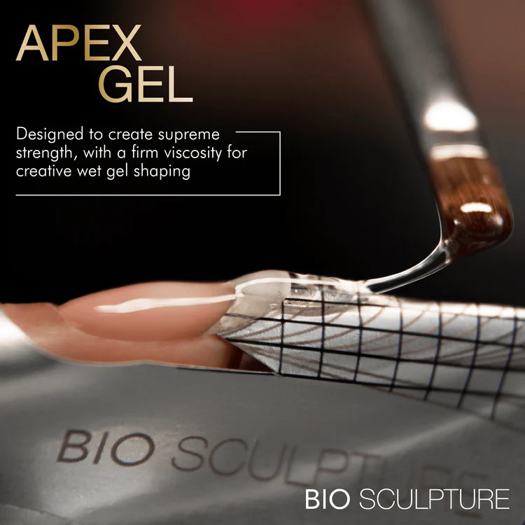Designed to create supreme strength, with a firm viscosity for creative wet gel shaping. The innovative technology of Apex Gel allows it to be applied as an upper arch strengthening layer on medium to hard nails, or as strong support on long nails and extensions.