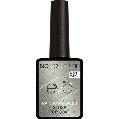 Rainbow Flakes No-Wipe Gloss Top Coat is a holographic flake top coat with a brilliant high gloss finish, bringing some magic to your nails.