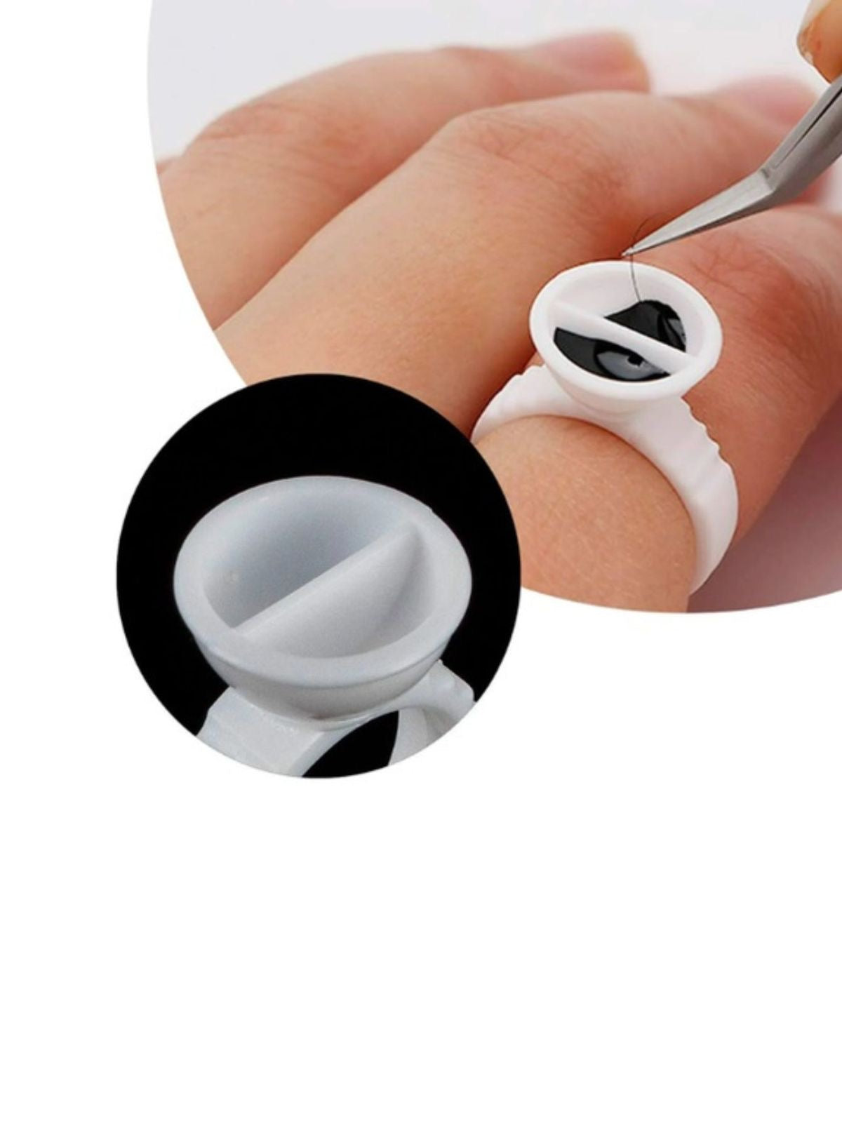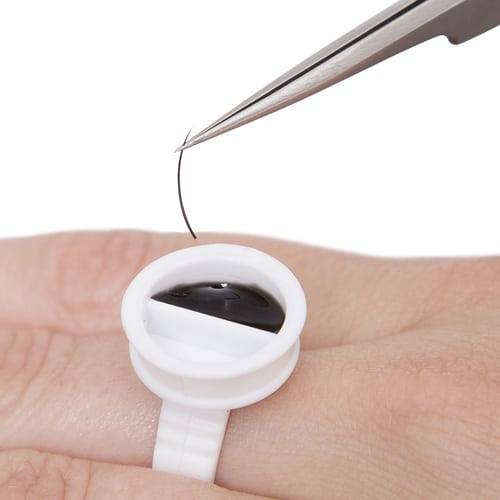 The adhesive ring is an ideal alternative to a mineral stone. The ring is used to hold adhesive during the lash extension application process.